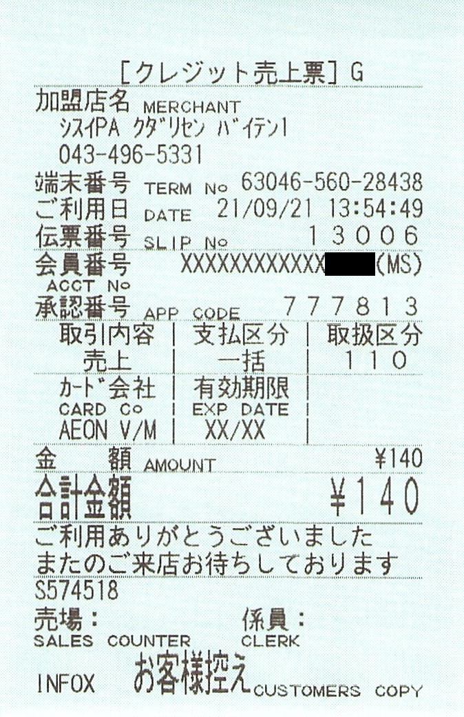 このダイソーはイオンモール成田のテナントであり、このINFOXも大家の端末です *8。成田のテナントでは銀聯はイオン端末で扱わずINFOXで扱う運用となっているようで、INFOXを設置していないテナントでは銀聯が利用できません *9 。